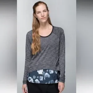 Lululemon Layered Long Sleeve Tee, Heathered Black/Inky Floral Black Ghost/Black