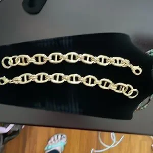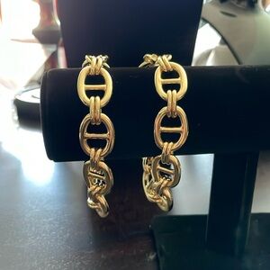 These goldtone chain link bracelets are in great condition. They were purchased at a flea market in Paris. They measure 9.5 inches long. They would be super for both ladies and gentlemen. You will receive the two bracelets.