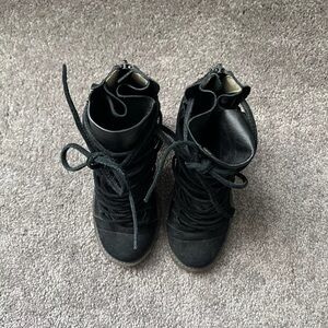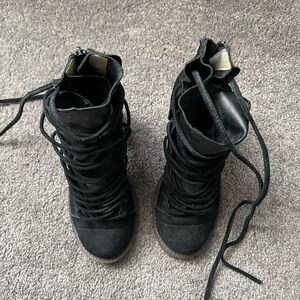 Farylrobin x Free People Lucas Bootie Shoe Womens Size 7 Black Suede Lace Up GUC