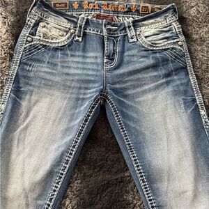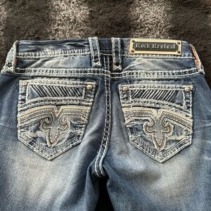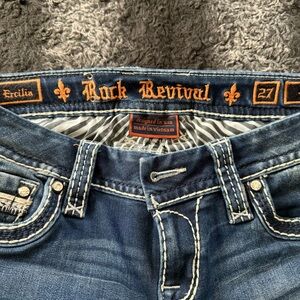 Two pair of almost like new Rock Revival skinny jeans size 27 inseam 31. Please look at my pictures ask me questions and offers are welcome.