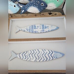 Two 13" x 5.5" abstract fish wall plaques from Hobby Lobby