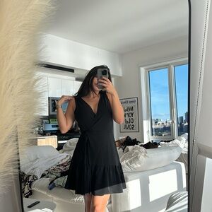 Aqua ruffle front tie dress
