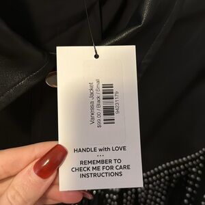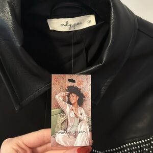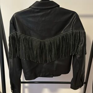 NWT Molly Green black fringe leather jacket