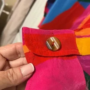 Excellent condition and vibrant colors. I’ve added ZERO filters to my photos. The photos are absolutely 100% authentic and reflect the true accuracy of the color of this beautiful blouse.