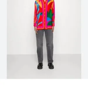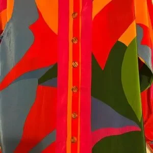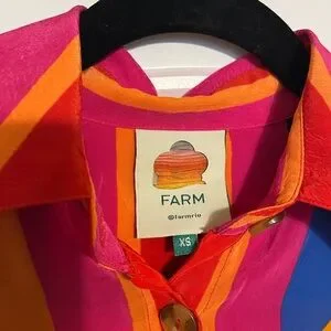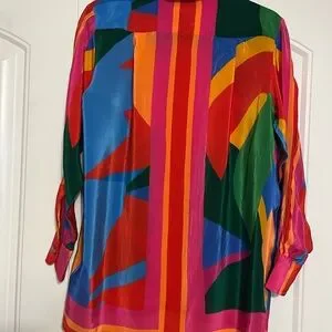 Farm Rio Color Leaves silk blouse SZ XS oversized