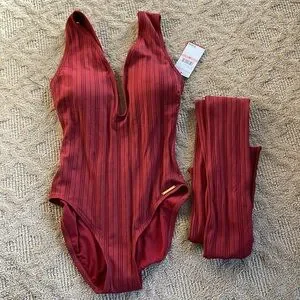 NWT VINCE CAMUTO V-NECK PLUNGE ONE PIECE SWIMSUIT W REMOVABLE BELT SZ 10 SANGRIA