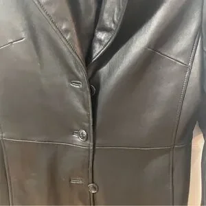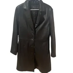 R&O Reilly Olmes Womens Black Genuine Leather Coat Mid Length Size M