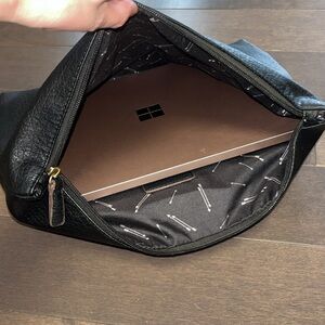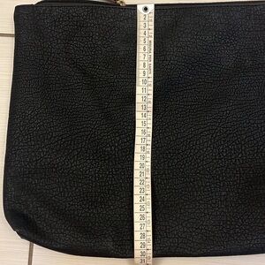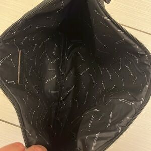 See last pic, the zipper damaged the vegan leather a bit. Could be coloured with a black marker, then no one will see.