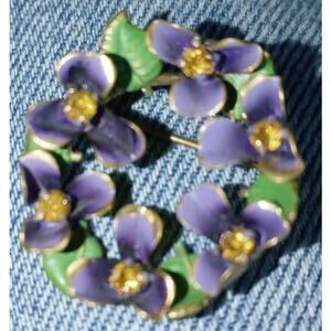 Enamel Purple Yellow Wreath of Violets Flower Brooch