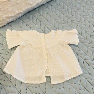* White Peasant-Style Yoked Pleated Bell Sleeve Blouse