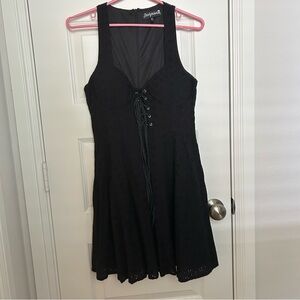 The Magnolia Dress is grunge-goddess perfection. Features lightly padded bra cups, a lace-up corset-style bodice, black eyelet fabric annnnnd pockets! It's also fully lined and amazingly figure flattering.