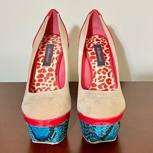 NWOT Dollhouse 5.5 in platform heels. 6.5. Suede/patent leather/faux snakeskin.