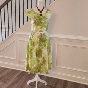 Jessica Howard Beautiful Green Print Dress Sz-10 Petite