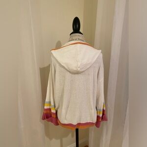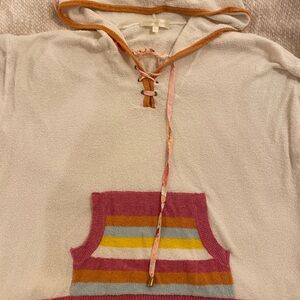 Loveshack Fancy white hoody with striped trim on the bottom and sleeves