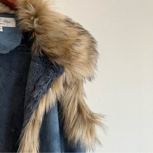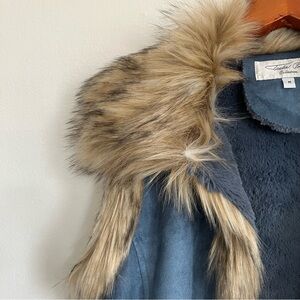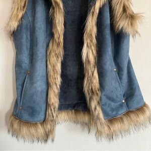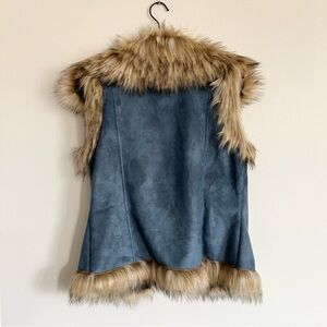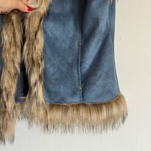 Tasha Polizzi Y2K Penny Lane Suede Faux Fur Luxe Sleeveless Vest Turquoise Teal