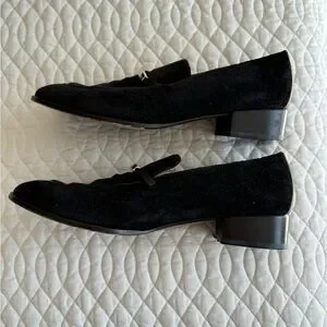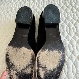 Gucci brown velvet loafers. Squared toe. Gold bar with Gucci written on it. Very good condition. Vintage