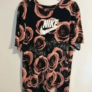 Unique Nike 100% Cotton t-shirt. Rose bush pattern front and back with the Nike and swoosh logo on the front. The Nike Tee knit Cotton. Thanks for looking any questions or offers don’t hesitate Length 33.5 pit to pit 22.5” Size XL oversized