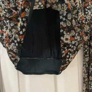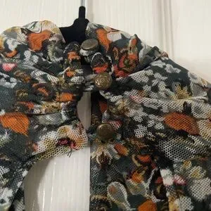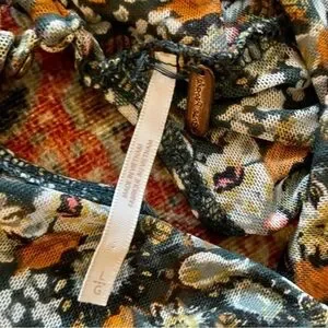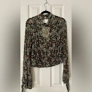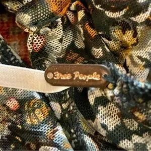 Free People All Dolled Up Floral Green Sheer High Neck Long Sleeve Mesh size L