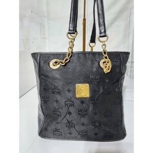 Authentic MCM Vintage Visetos Nylon Shopping Tote Bag Black