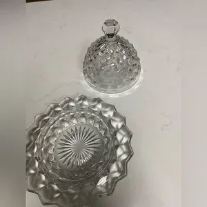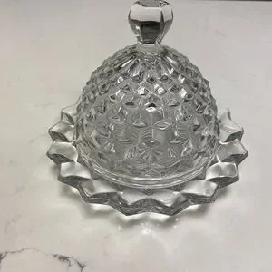 Vintage Cube/Cubist Fostoria American Clear Glass Round Dome Covered Butter Dish