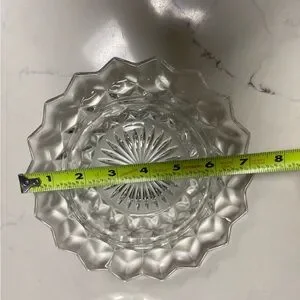 This elegant round butter dish by Fostoria is a beautiful addition to any antique collection. With a capacity of 1 pound and a diameter of 7.25 inches, it is the perfect size for serving butter or other small items. The dish features a glossy crystal finish and is made of fused glass, making it a durable and unique piece.