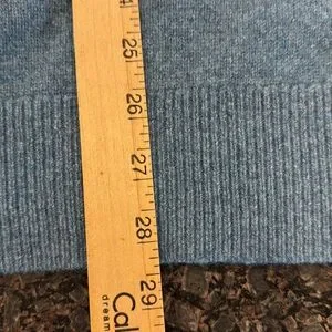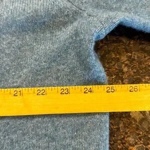 This is a beautiful Banana Republic 100% Merino Wool sweater in a soft blue color. Chest Width and Length are listed in photos.