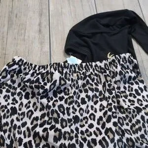 New with Tags The Children's Place Girl's 2 Piece Long Sleeve Cat/Cheetah/Leopard Print Pajamas/PJs in Black and Animal Print, size XXL (16)