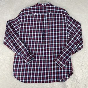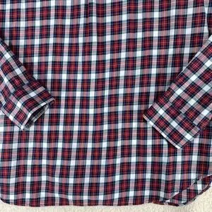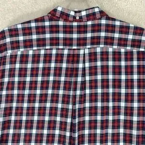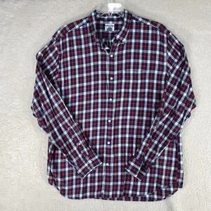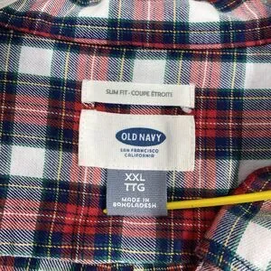 Old Navy Button Down Shirt Men XXL Red White Navy Blue Excellent Slim Fit Plaid