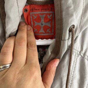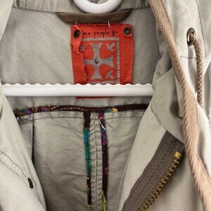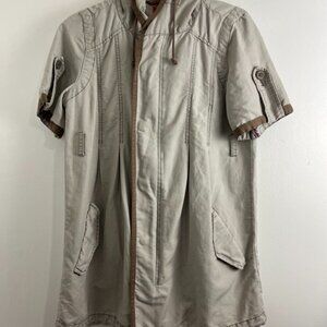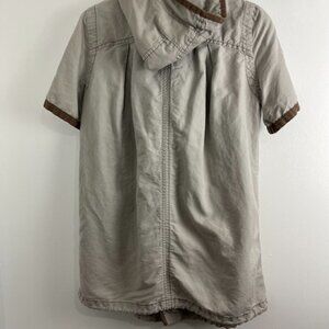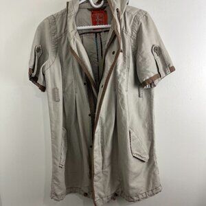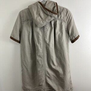Free People Khaki Short Sleeve Cotton Utility Jacket w/ Hood