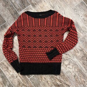 Excellent condition! Theory 100% Wool Fretta Loryelle Crew Neck Sweater, Red & Black Geometric Print, Women’s M