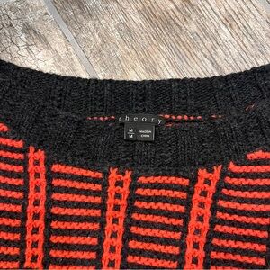 Theory 100% Wool Fretta Loryelle Sweater, Red & Black Geometric Print, Women’s M