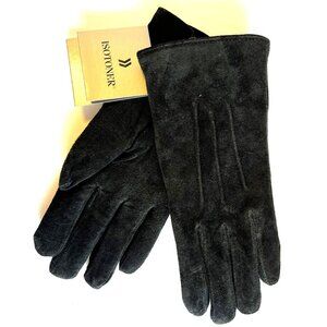 Isotoner/Totes Black Suede leather Fleece-Lined Women's Gloves L