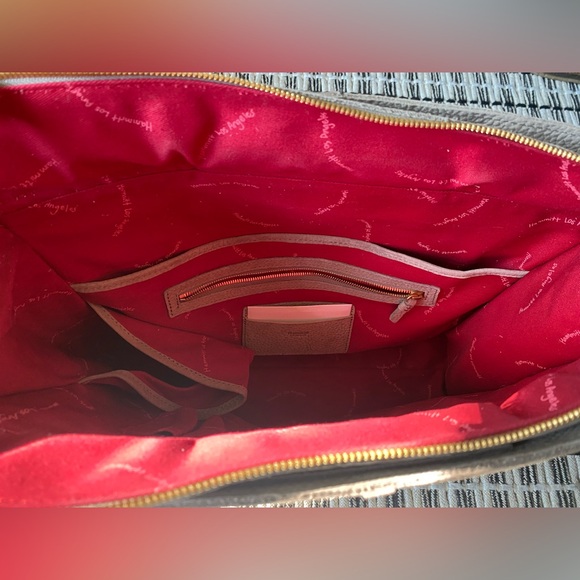 Hammitt Benjamin suede tote with gold hardware. Zipper closure. Exterior slit pocket. 5 interior credit card slots. 2 pen slots. Water bottle pocket. Zippered interior pocket. Tablet or 13”Laptop pocket. Meaures aporox 15" x 4" x 12.5". Handle: 0.75"W x 11.8" drop. Excellent used condition. Comes with Hammitt dust bag.