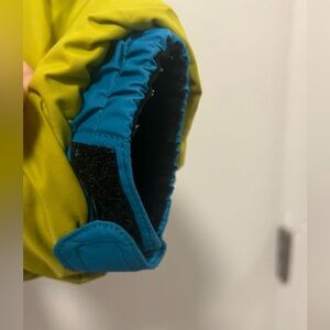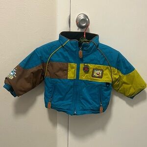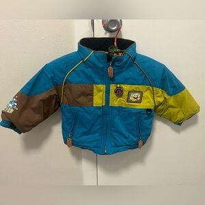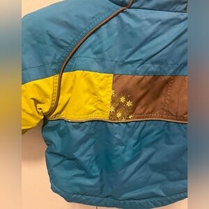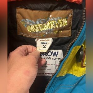 Obermeyer SpongeBob children’s ski coat 2T with I-Grow sleeves, has glove clips on one sleeve.