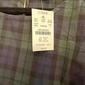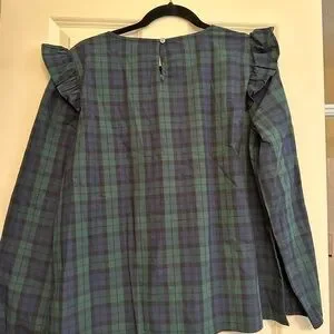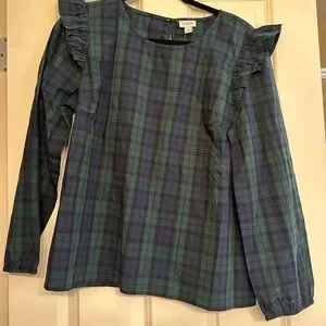 NWT J. Crew navy/green plaid ruffle sleeve blouse