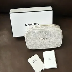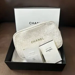 NWT CHANEL Beauty Pouch Make Up Bag + 2 Free Chanel Samples & Chanel Box