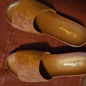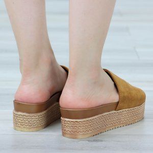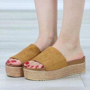Faux Suede Tan Comfort Platform Sandal Slip On Sliders
