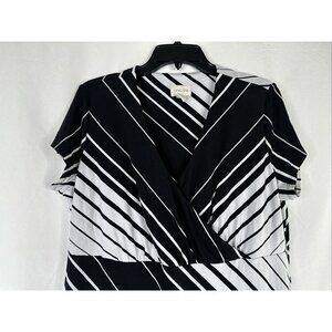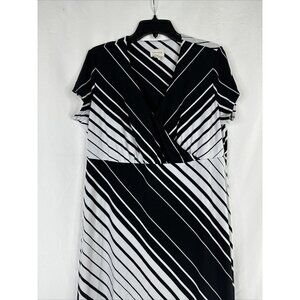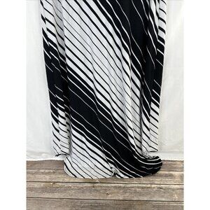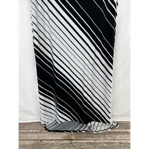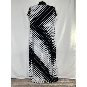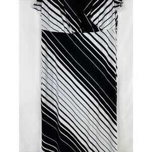 Chicos Maxi Dress Womens Size 2 Black White Striped Short Sleeve Stretch