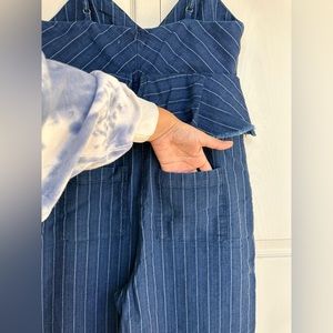 ETT TWA by Anthropologie blue striped denim jumpsuit size medium NWT