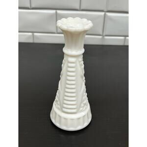 Vintage Anchor Hocking Stars & Bars Bud Vase White Milk Glass 6"