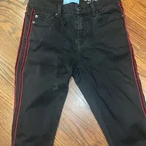 7 For All Man Kind Black Denim Jeans high waist ankle skinny