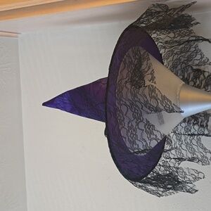 Halloween Witch Hat Purple Costume Skull Spider Web Lace