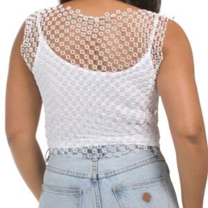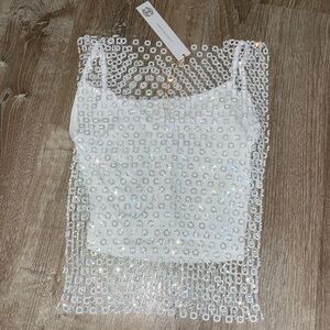 NWT HOUSE OF HARLOW 1960 Floral Rhinestone Mesh Top