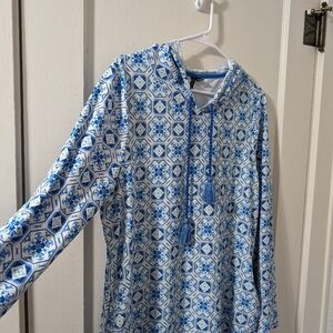 Aqua Et Sol Blue & White Hooded Patterned Top
