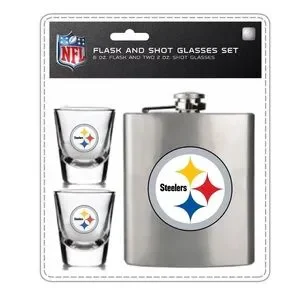 NFL Officially Licensed Team 6 OZ Flask & Two 2 OZ Shot Glasses Set