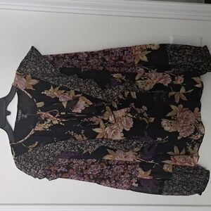 A patchwork of whimsical floral motifs decorate this tie-neck blouse, which features cascading ruffles and blouson sleeves. Airy crinkle georgette offers an effortless drape and enhances its bohemian-inspired spirit.