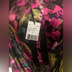 NWT Betsey Johnson Multi Color Floral Pink and Black Dress Size Large