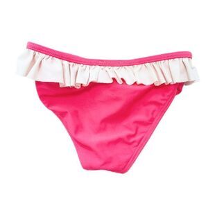 This charming baby bikini set is made by Armani Junior. This neon pink is perfect for all little girls. It is decorated with beautiful ruffles and a letter logo charm. It is recommended to hand wash the item. The top has adjustable straps. Beautiful and a rare find, get this on your little fashionista and let those Insta worthy photos roll in! EUC. Like new Condition!