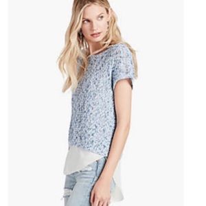 ๐บEFFORTLESS BEAUTY & SUPER CUTEโฆLUCKY BRAND MARLED STITCH POPOVER SWEATER DOUBLE LAYER SPLIT BACK. Sweater: 84% cotton and 16% polyester. Features: marled yarns, chevron design, built in cream shell, crew neck, curved high/ low hem and split back detail. Measurements: 19.5โ sweater length, 24โ white blouse length, 23.5โ sweater lenth(back) and 26.5โ white blouse length(back). ***EXCELLENT CONDITION***. Freshly laundered!