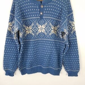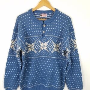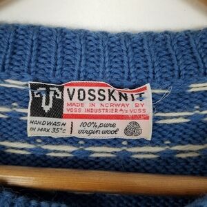 Vintage Voss Knit Norway Virgin Wool Chunky Knit Blue White Snowflake Sweater